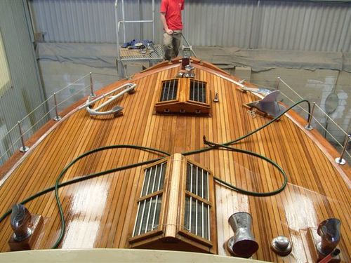 craftsmen expertly clean, sand, and refinish teak decking, railings, and trim to bring back their original